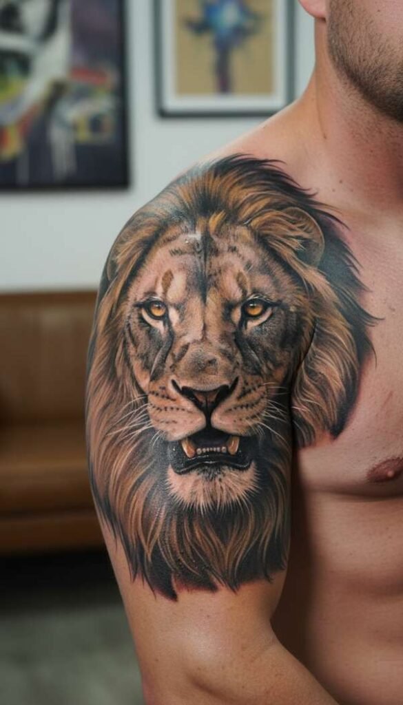 A lioness tattoo is often chosen by women to represent motherhood and fierce protection. It looks absolutely stunning when done in a realistic black and grey style.