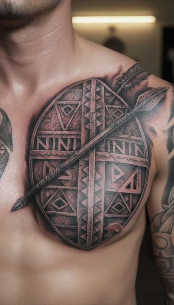 Warrior and Shield African Tattoo Ideas