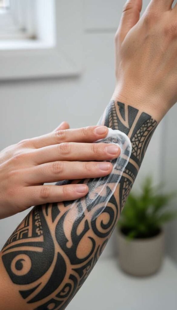 - Applying a thin layer of unscented tattoo lotion.
