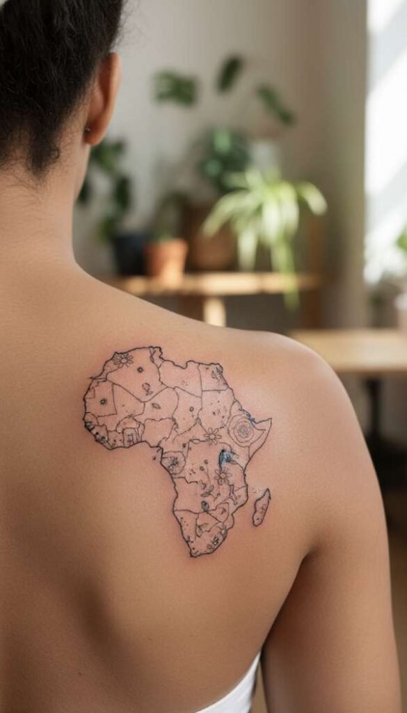Sometimes the simplest designs carry the heaviest impact. One of the most popular African Tattoo Ideas is the continent map itself.