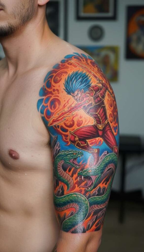 Think about the glowing auras or epic attack moves from your favorite television episodes. These colorful pieces require an artist who genuinely excels at heavy color packing. You can find out more about large scale projects in our dedicated guide to arm sleeve tattoos.