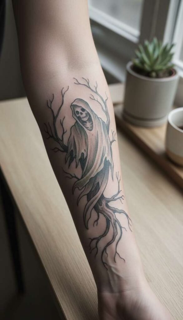 Carefully deciding exactly where to put your new ink is just as important as the actual design itself. Bare forearms are a highly visible and incredibly popular spot for your brand new Halloween Tattoo. This prominent placement perfectly allows you to proudly show off your spooky pride every single day.