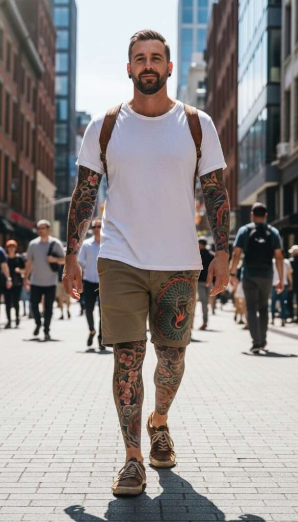 You also have complete control over visibility in your daily life. Wearing pants completely conceals your art during professional corporate meetings. Switching to shorts instantly reveals your gorgeous leg tattoo ideas to the world.