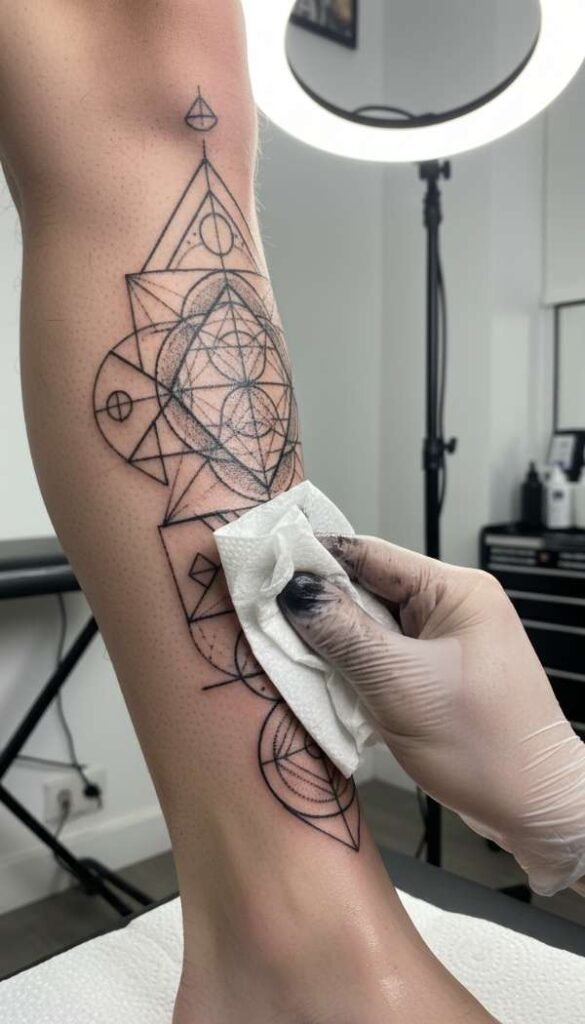 You will often see geometric patterns or vertical daggers placed on the shin. The straight line of the bone helps artists align perfectly symmetrical stencils. Just be prepared for a spicier session if you choose these bold placements.