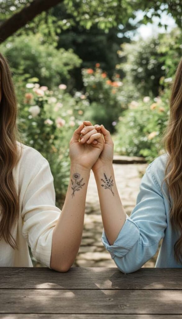 • Matching delicate wildflowers represent growth and natural beauty. They look stunning on the inner forearm or ankle.